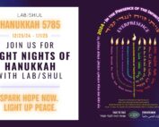 Gather with us online on each of the eight nights to light the candles – Lab/Shul style. Each night will feature songs and blessings, with unique voices and special guests from our community, co-creating a global glow.