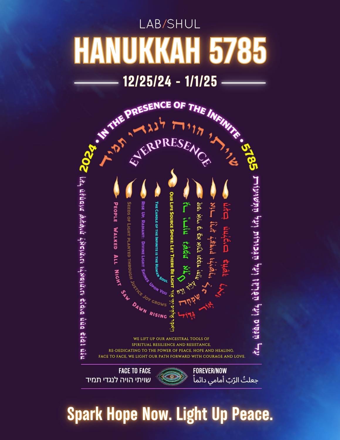 Get your menorah, Gather around your Zoom screens with us, let’s Spark Hope Now and Light Up Peace.