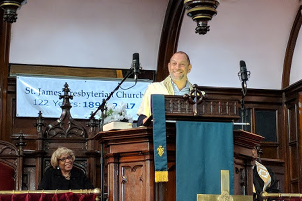 To build on Dr. King’s call for justice from all and for all, Rev. Derrick McQueen from St. James Presbyterian Church spoke at Sabbath KING on Friday and Lab/Shul’s own Rabbi Amichai Lau-Lavie preached from the pulpit at St. James on Sunday.